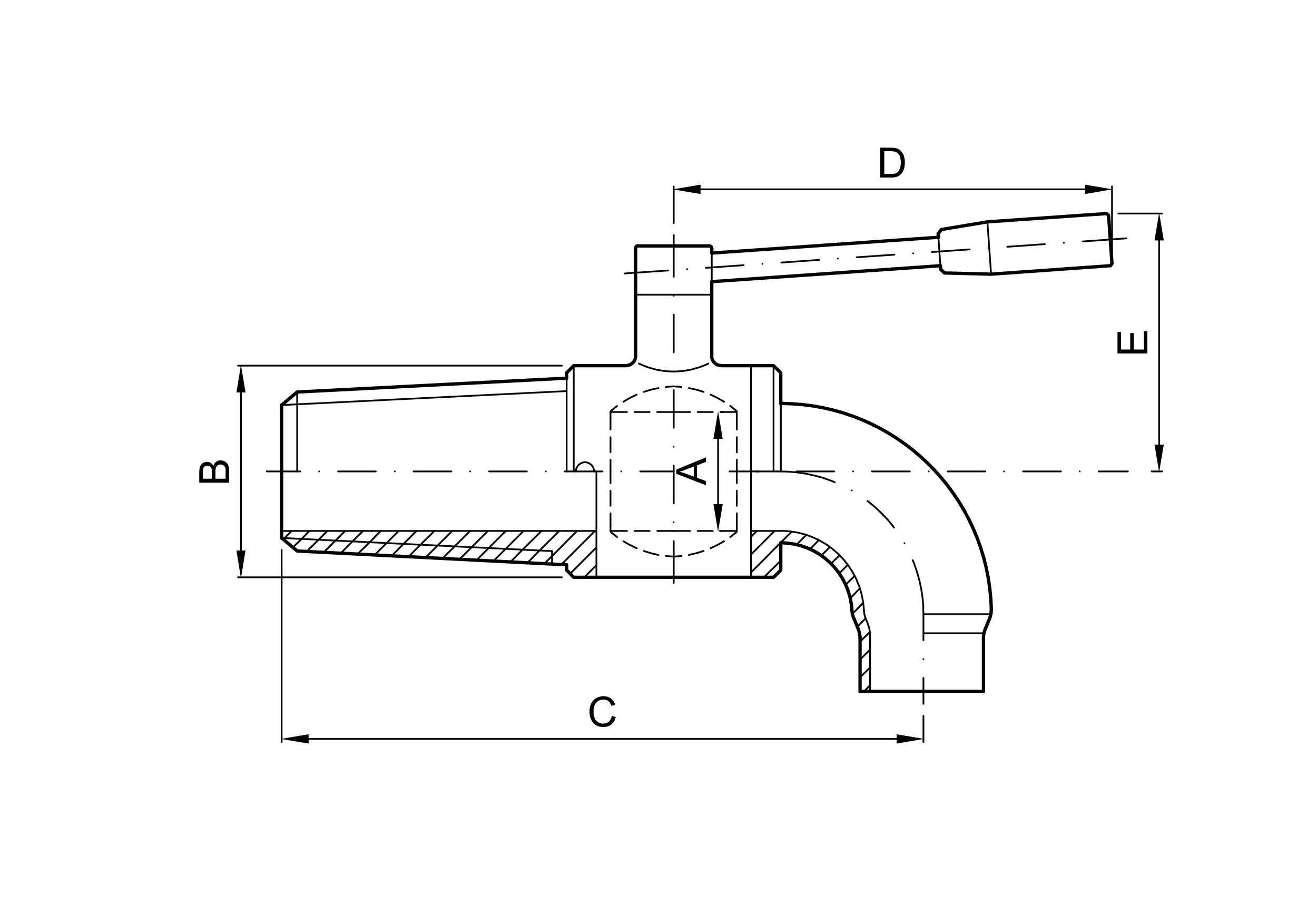 RUBINETTO A SFERA CON CURVA PER BOTTI IN LEGNO