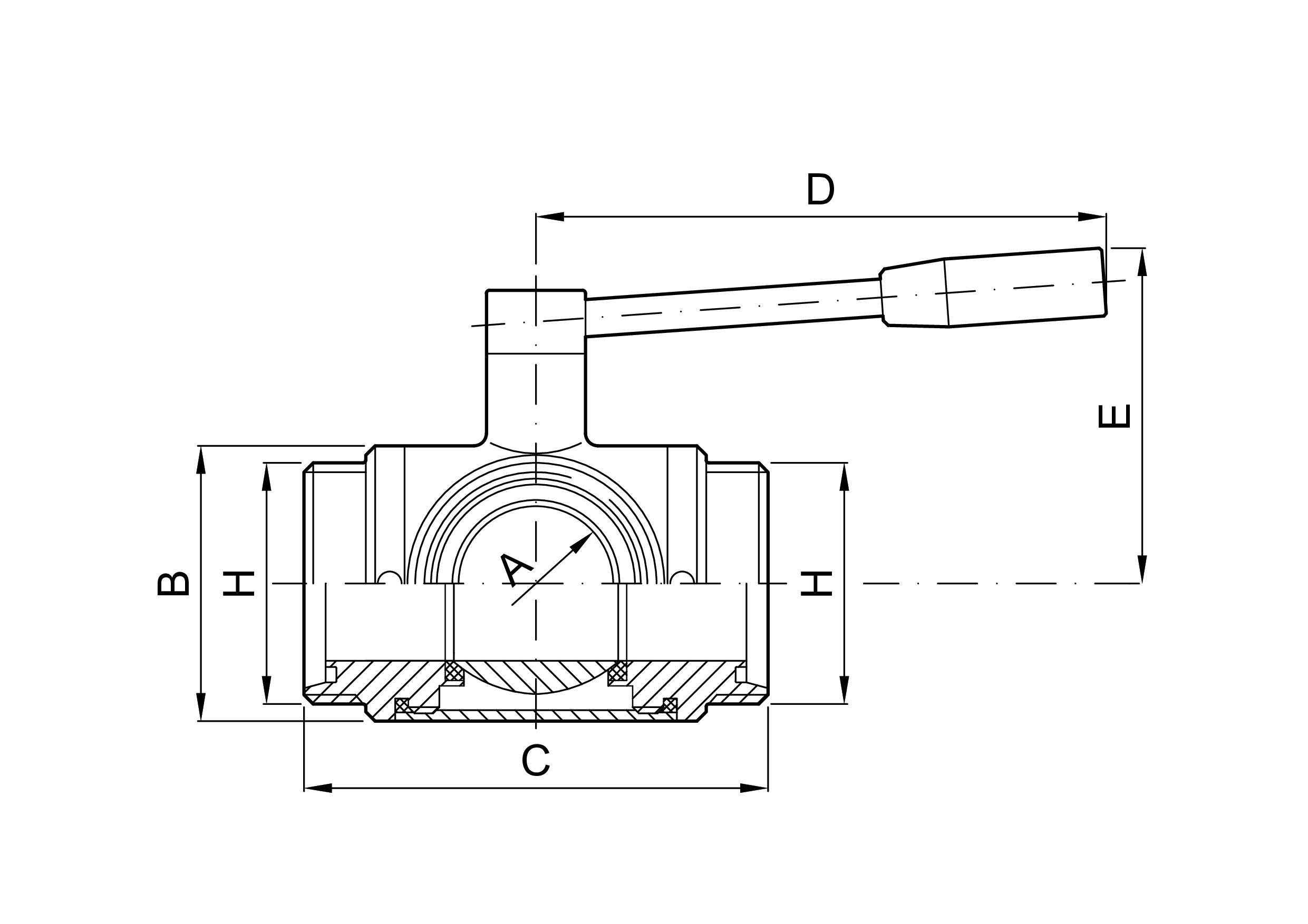 VALVOLA A SFERA “L” A TRE VIE CON ATTACCHI DIN FEMMINA